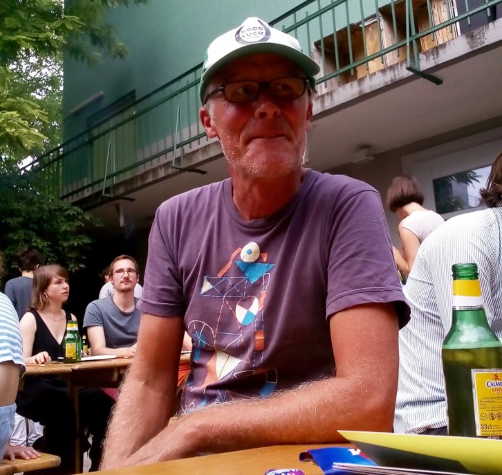 ROXY The­ater­leit­er Sven Heier, dies­mal zum Saison­start als Gas­tro­gast­ge­ber und ver­schwitzter Grillinten­dant.