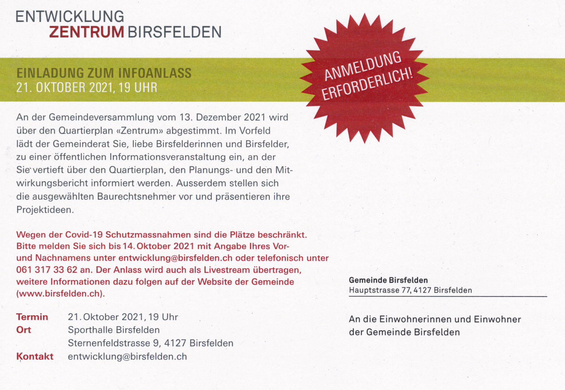 Für alle, die für den 13. Dezember 2021 noch Antworten auf Fragen brauchen, ist dies die ideale Gelegenheit diese zu bekommen. Und somit auch ein Beitrag zur Verschlankung der Gemeindeversammlung!
