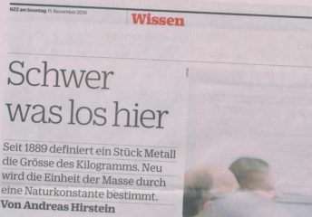 Die “NZZ am Sonntag” (11.11.2018) erklärt uns in ihrem Bund “Wissen” die Grösse des Kilogramms. Wir wissen nicht, ob das am närrischen Datum der Veröffentlichung liegt. Gespannt warten wir auf…