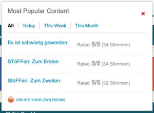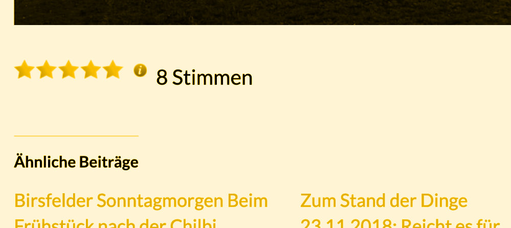 Nachdem Sie nun über Tags und Links, Dienstleistungen, Abo und Kommentare Bescheid wissen, kommen wir heute zu den Sternen. Wenn Sie jetzt nur Bahnhof verstehen können Sie hier klicken und verstehen bald mehr.