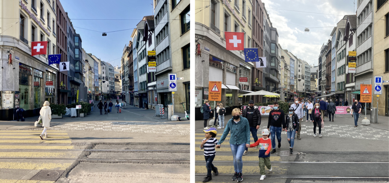 Hier ein Bild ohne Kommentar: Steinenvorstadt Basel vor und nach der »Terrassenöffnung«