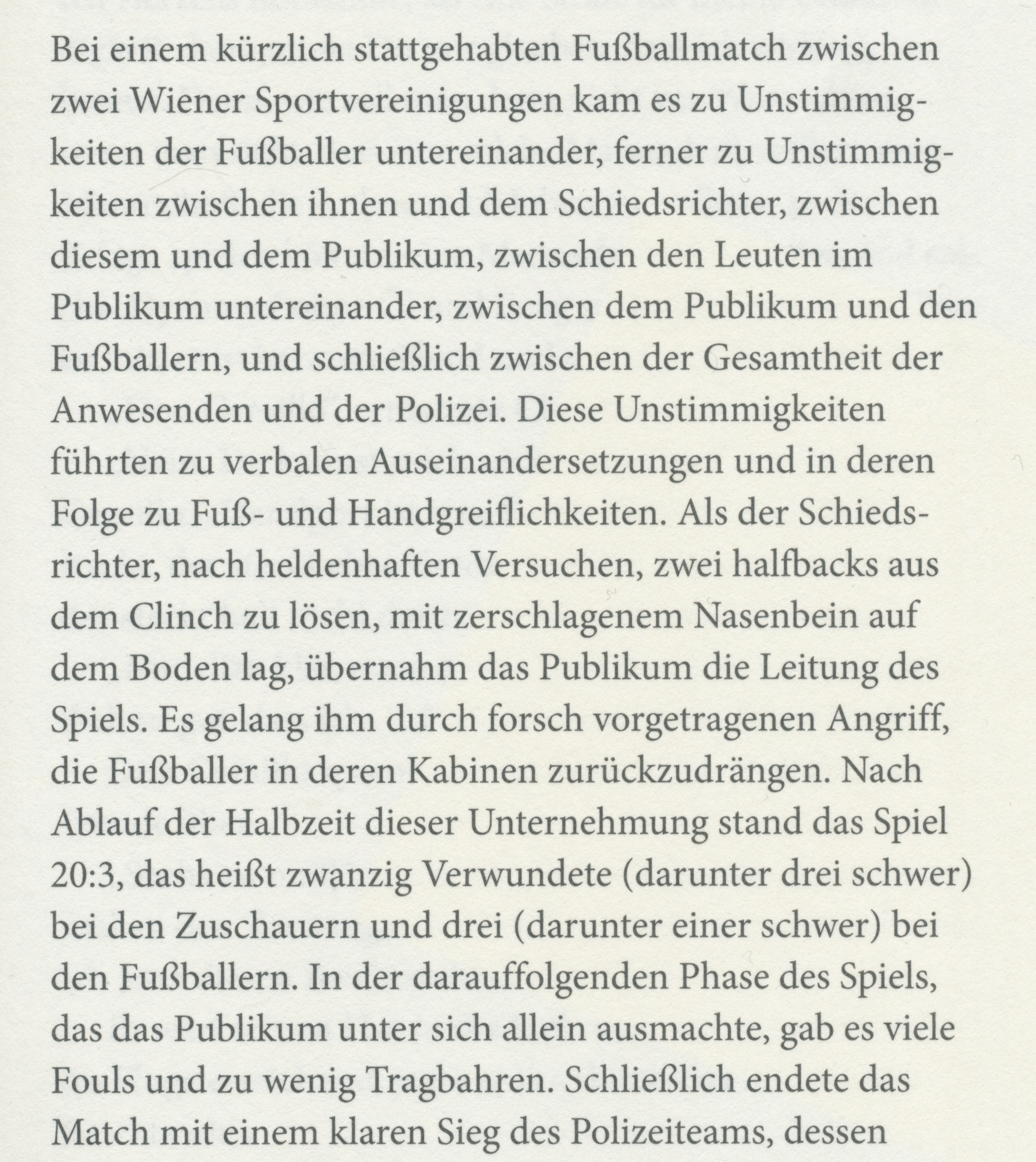 Alfred Pol­gar berich­tet heu­te zu einem Spiel zwi­schen zwei Wie­ner Sport­ver­ei­ni­gun­gen. So nann­ten das die Habs­bur­ger, als es noch ums Spiel und noch nicht ums Geld ging.