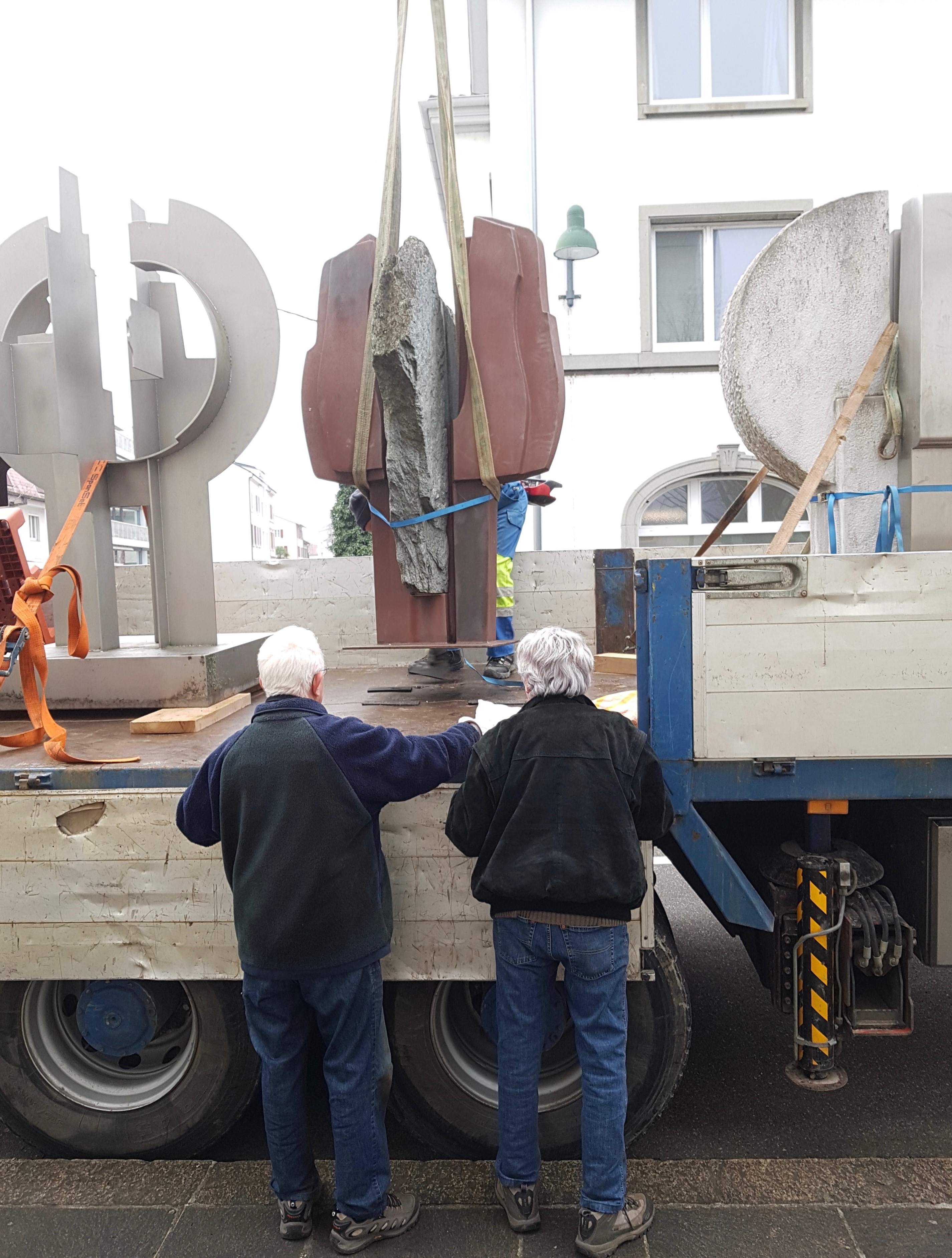 Gestern wurden die Skulpturen mit schwerem Gerät wieder an die ehemaligen Standorte in der Gemeinde Therwil zurückgeführt. Vielen wird erst jetzt auffallen, was hier oder dort nicht mehr zu sehen ist.