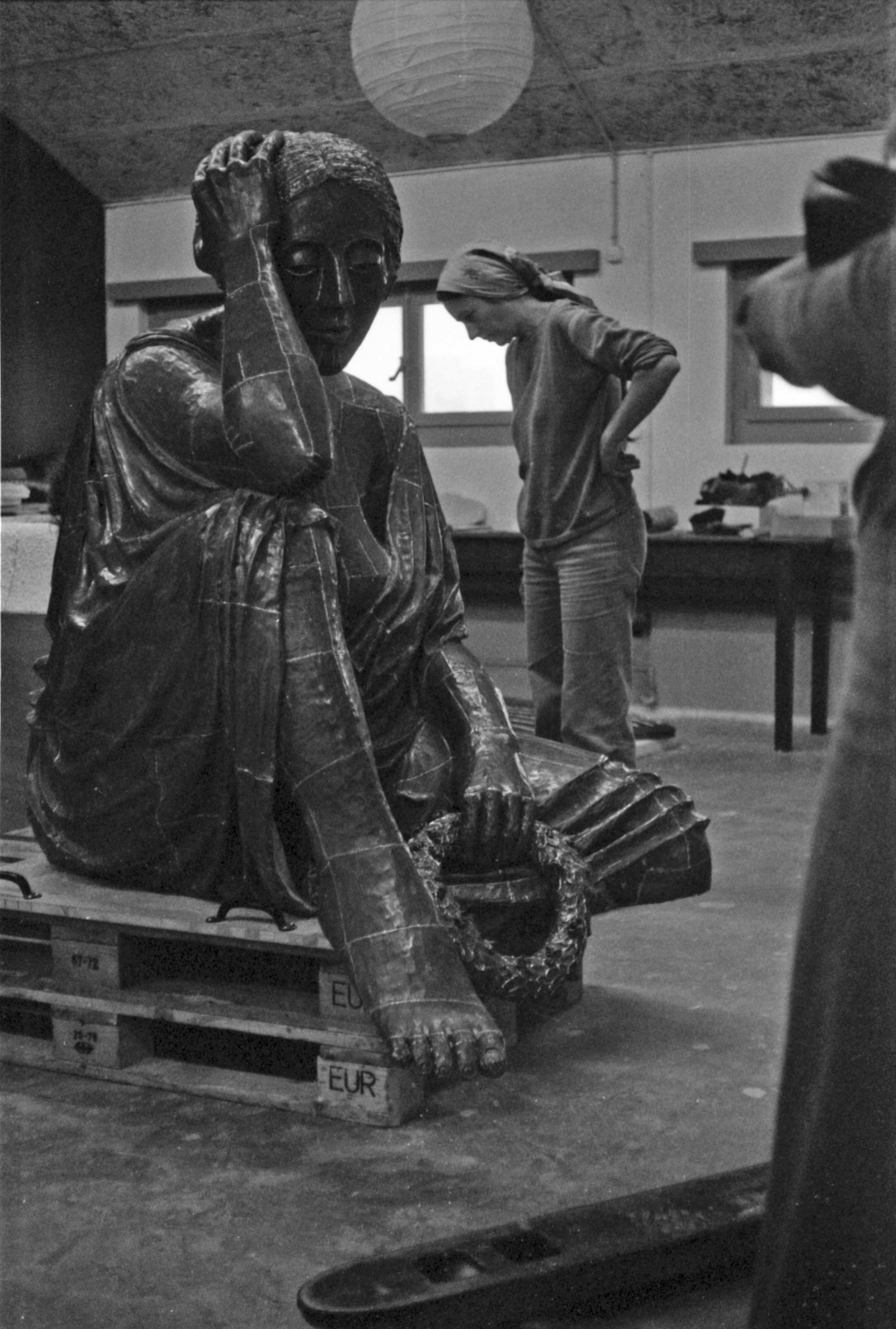 der seit den Anfän­gen im Ate­lier­haus gear­bei­tet hat­te, als auch die Hel­ve­tia von Bet­ti­na Eichin, sie­he Foto. Damals sass die Hel­ve­tia noch auf EUR-Norm­pa­let­ten, jetzt sitzt sie am Klein­bas­ler Rhein­ufer, den Blick gegen den Euro-Air­port gerich­tet, oder ganz all­ge­mein bach­ab gegen Nor­den.