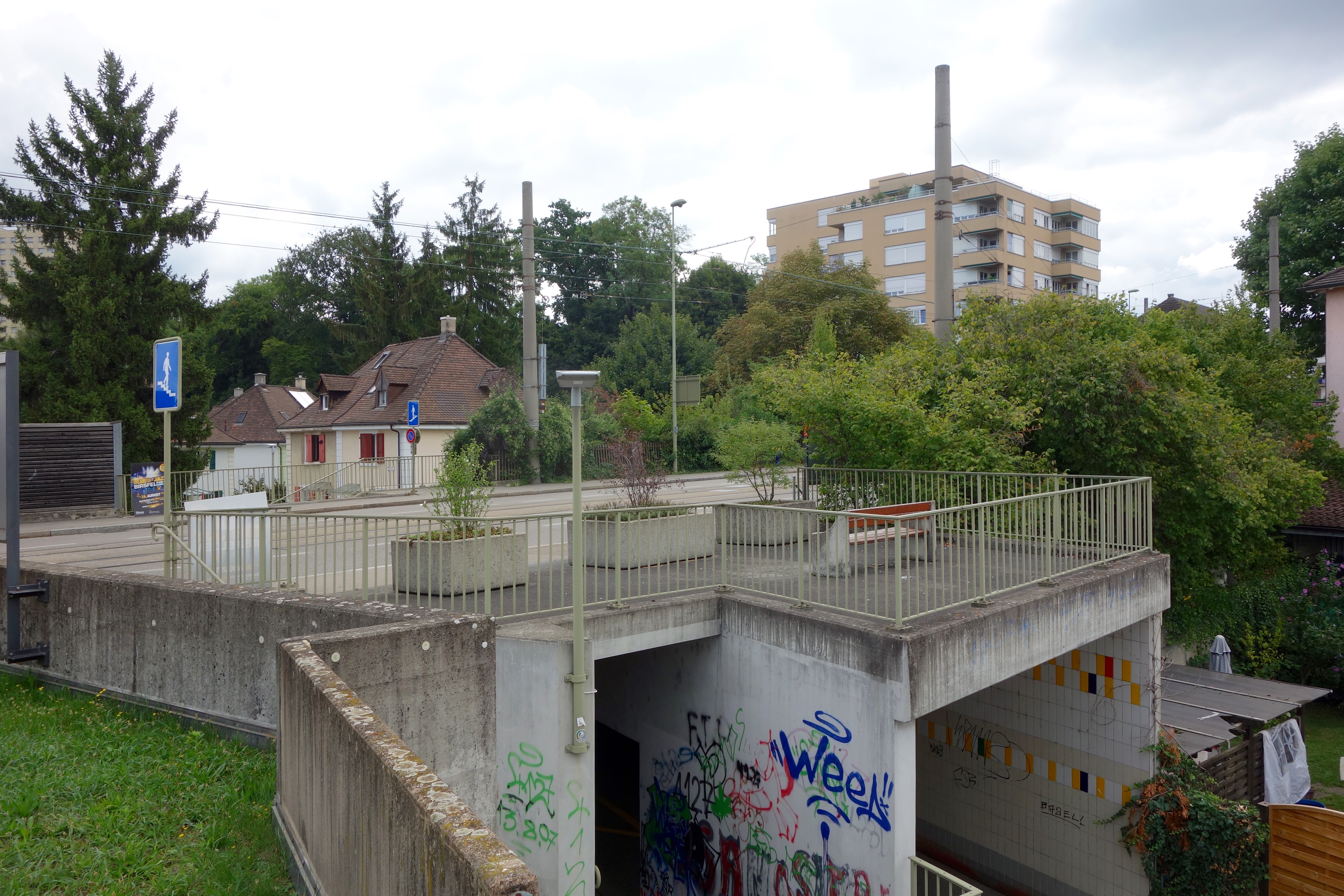 Gestern hat sich Franz Büchler zum Dennerparkplatz Gedanken gemacht. Eine Etage höher, von der anderen Seite, der Rheinstrasse, gibt es auf dieser Parzelle ebenfalls eine Parkiermöglichkeit. Ein Parkverbot wäre da allenfalls sinnvoll. Eine Tafel befindet sich bereits dort. Die Tafel ist etwa gleichartig vernachlässigt, wie nebenan einer der auffälligsten Unorte Birsfeldens, die namenlose Aussichtstrasse ob der Dennerunterführung.