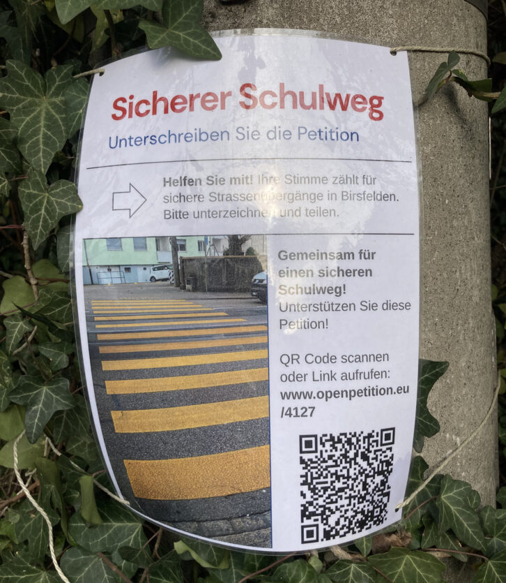 Wir fordern den Landrat auf, einfache, schnell umsetzbare Massnahmen, die das Überqueren der Rheinfelderstrasse in Birsfelden sicherer machen, umzusetzen.