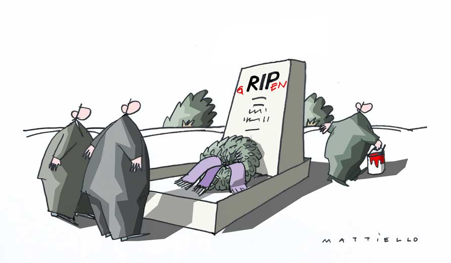 Schang Hutter über Mattiello: »Über den Wert einer Zeichnung entscheidet die Lesbarkeit der Mitteilung. Mattiello zeichnet Erlebnisse und Zustände unserer Gesellschaft kritisch und klar ablesbar, er ist Zeichner für die anderen. Er will zeichnen, weil er etwas zu sagen hat.«