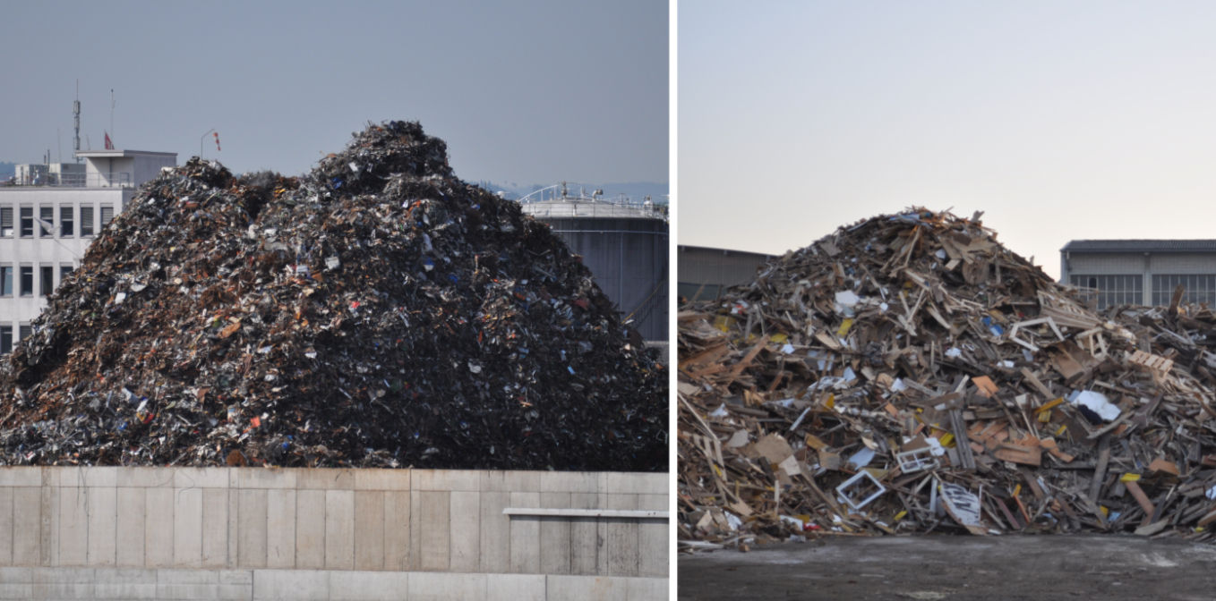 Dabei kom­men wir natür­lich noch an den ver­schieden Recy­cling-Fir­men vor­bei. Neu entsor­gen diese Fir­men (nach aktueller Sprachregelung) nicht mehr unseren Abfall und tren­nen von Hand die ver­schiede­nen Rohstoffe, son­dern die Fir­men sind Teil der »Kreis­laufwirtschaft« und wer­den in Zukun­ft als High­tech-Fir­men geführt und der Güsel entsprechend smart entsorgt. Die prog­nos­tizierte Dig­i­tal­isierung aller Hafen­fir­men wird uns zukün­ftig einen wun­der­bar smarten Hafen (Smart City) bescheren. Die Recy­cling-Fir­men entsor­gen den getren­nten Abfall aktuell gross­mehrheitlich per Schiff in die Nieder­lande (Mod­ell: Aus den Augen, aus dem Sinn). Offen­sichtlich begehrt ist dabei der Bauschutt, welch­er in der Sta­tis­tik als expandieren­des Exportgut (mit Steigerungspo­ten­tial) fig­uri­ert.