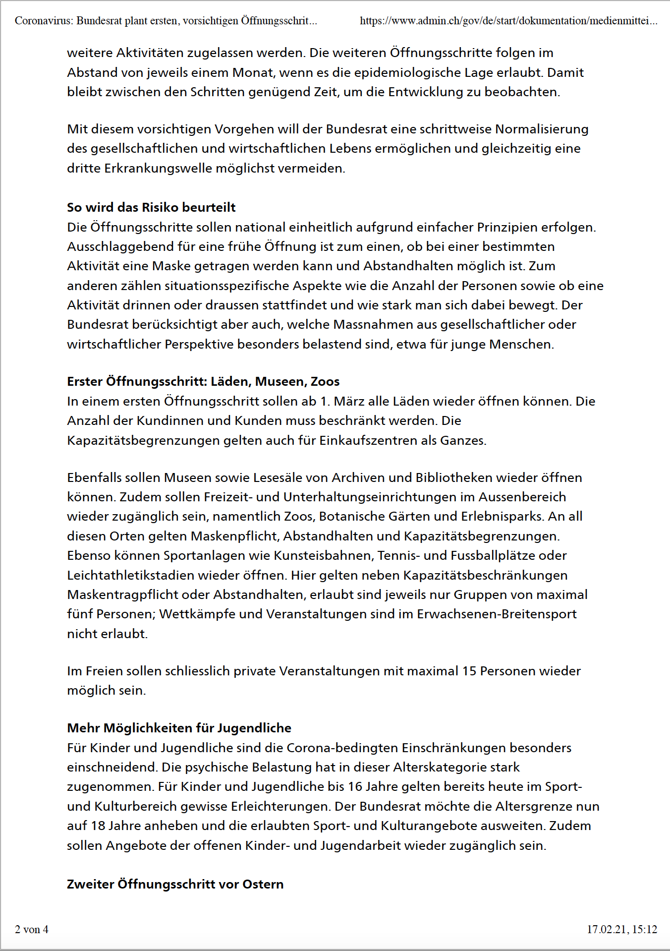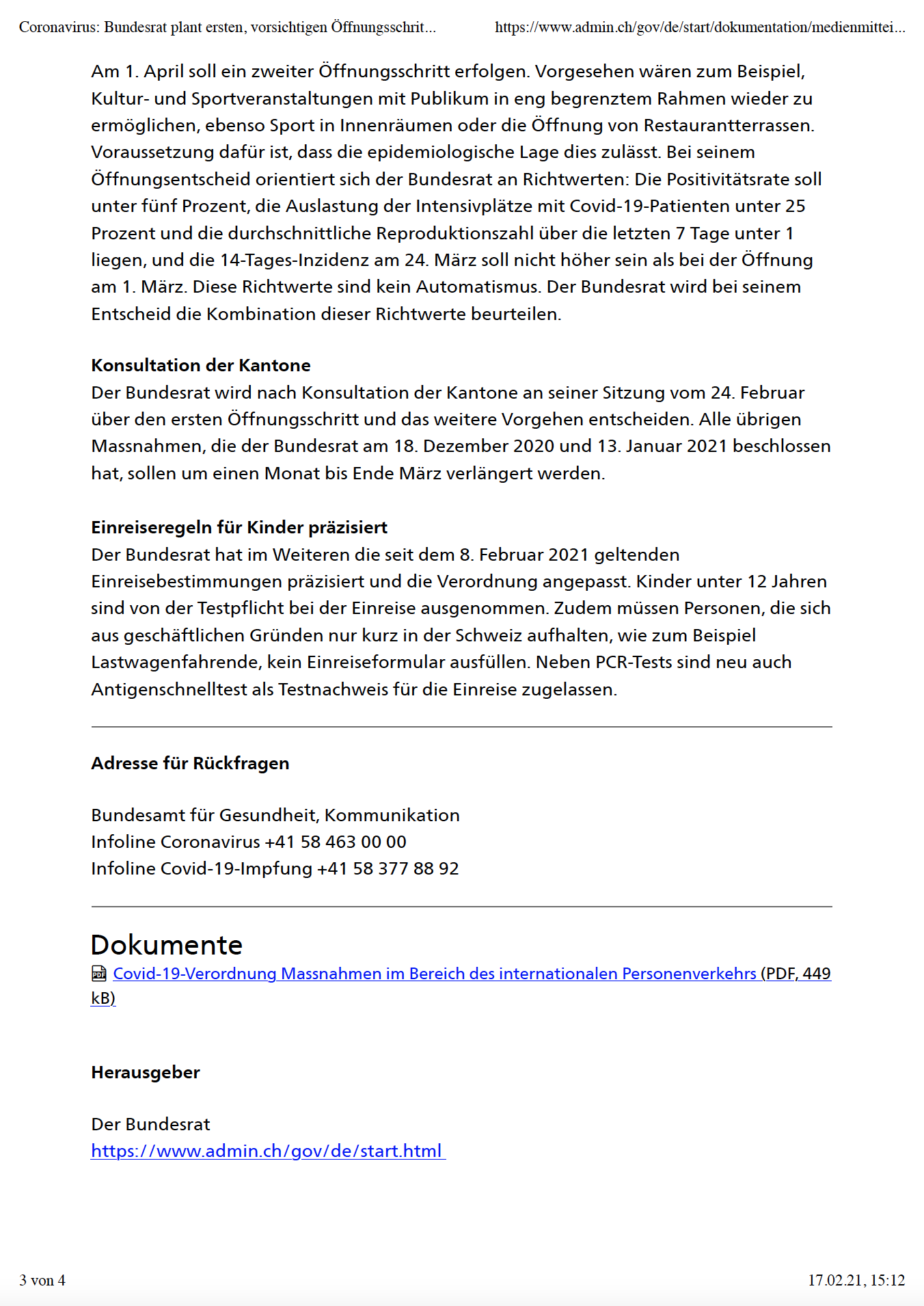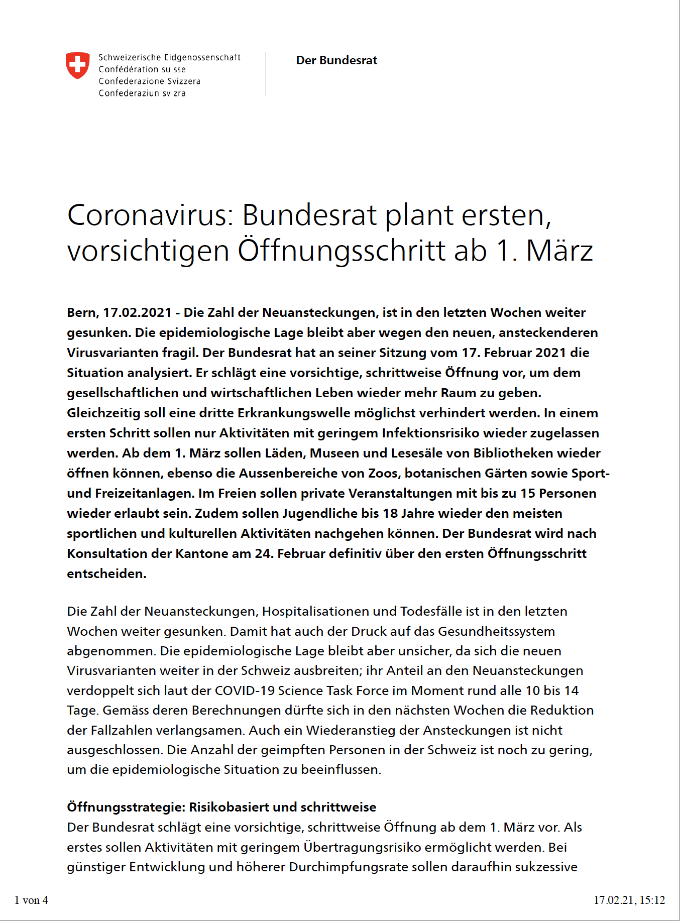 Doch hier die Medienmitteilung des Bundesrats vom 17. Februar 2021:
