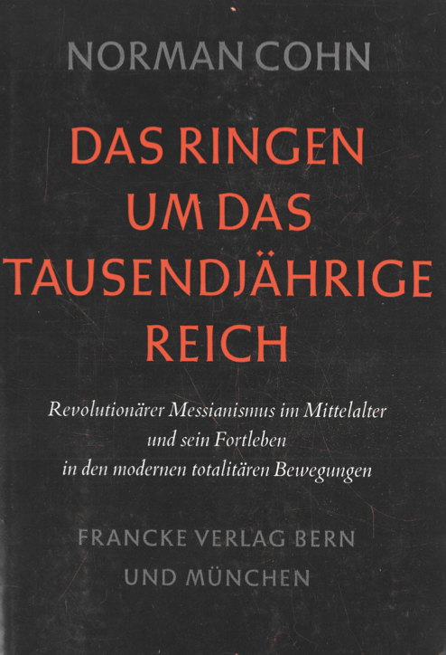 Es ist inter­es­sant, die bei­den Bücher von Nor­man Cohn und von Wal­ter Nigg ein­an­der gegen­über­zu­stel­len. Bei­de set­zen sich mit dem Chi­li­as­mus, resp. Mil­lena­ris­mus — der Erwar­tung des Tau­send­jäh­ri­gen Reichs — aus­ein­an­der, aber ihre Blick­win­kel ste­hen sich häu­fig dia­me­tral gegen­über: