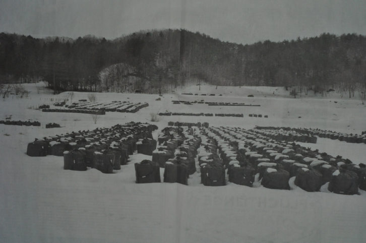 Hier sehen Sie sogenannte Fleconbags (Flexible Container Bags). Sie enthalten jeweils 1000 Liter kontaminiertes Material (Laub, Erde, Dreck), das von der Oberfläche in harter Arbeit abgetragen wurde. Landwirtschaft wird wohl noch lange Zeit in diesem Gebiet nicht möglich sein. Die Säcke werden wohl noch lange hier stehen, denn niemand weiss wohin damit.