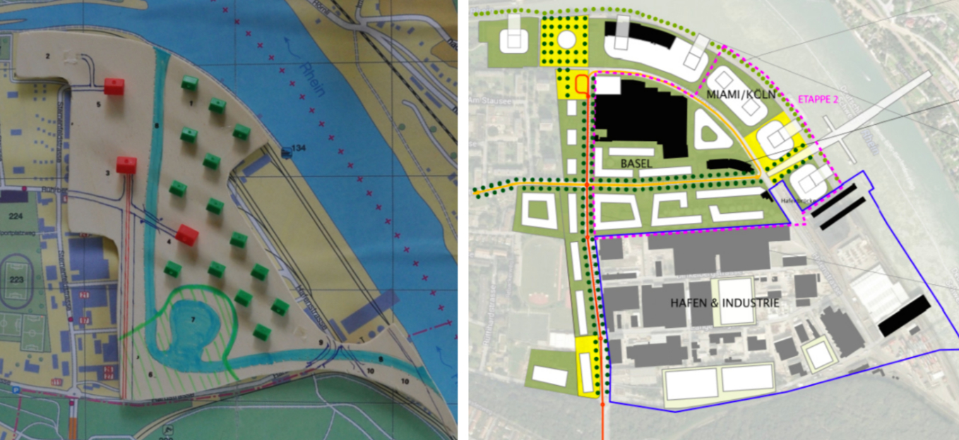 Auch Sven Frey hat sich vor einiger Zeit dir Zukunft des Hafens vorgestellt und selbst die Gemeinde Birsfelden war nicht untätig. Die Resultate sehen Sie hier, links die Idee von Sven Frey und rechts die Idee der Raumplaner Wirz-VolpatoHatz, hier noch etwas umfassender.