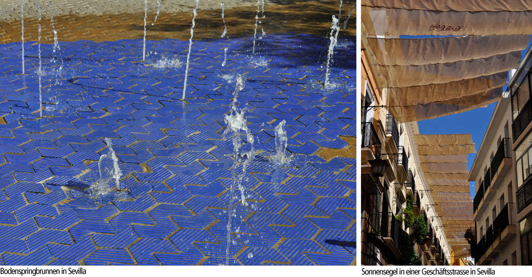 Spiel­plät­ze und Pau­sen­plät­ze wer­den teil­wei­se »ent­sie­gelt« und ver­schat­tet, durch Bäu­me oder durch Son­nen­se­gel. (Aber nicht nur das Bänk­li vom Mam­mi)