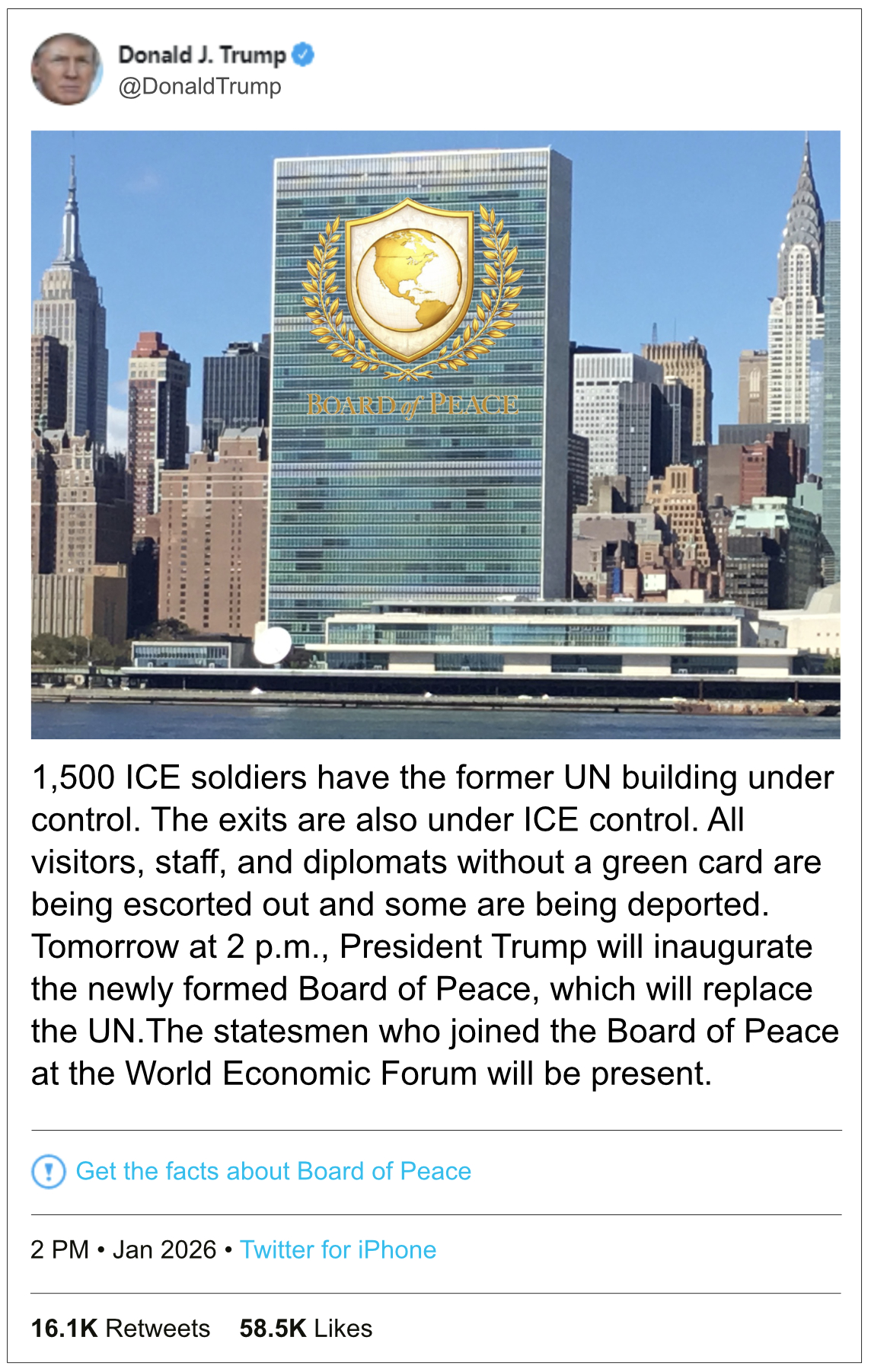 Was nach der grossmundigen, wohl eher grossmäuligen, Ankündigung am WEF zu erwarten war, ist nun schneller als erwartet eingetroffen. Präsident DJ Trump hat Wort gehalten. Wie einem Twittertweet entnommen werden kann:
