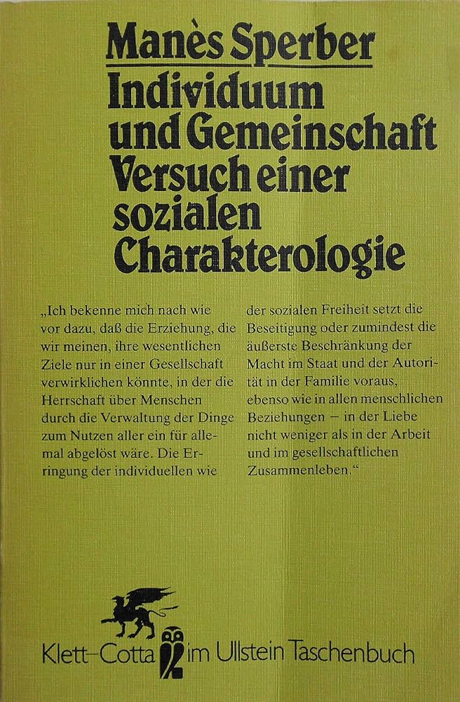 Damit ist das Stich­wort gefal­len: Mar­xis­mus! Als Sper­ber 1927 auf den Wunsch Adlers hin nach Ber­lin zog, um dort für die Indi­vi­du­al­psy­cho­lo­gie zu wer­ben, begann er, schon bald von der Rich­tig­keit der mar­xis­ti­schen Gesell­schafts­ana­ly­se über­zeugt, Schritt um Schritt an einer Syn­the­se von Adlers Psy­cho­lo­gie und Mar­xis­mus zu arbei­ten. Sie gip­fel­te anfangs der 30-Jah­re in sei­nem Manu­skript “Indi­vi­du­um und Gemein­schaft. Ver­such einer sozia­len Cha­rak­te­ro­lo­gie”, das aller­dings ange­sichts der bald ein­set­zen­den Zeit­wir­ren erst 1978 publi­ziert wur­de.