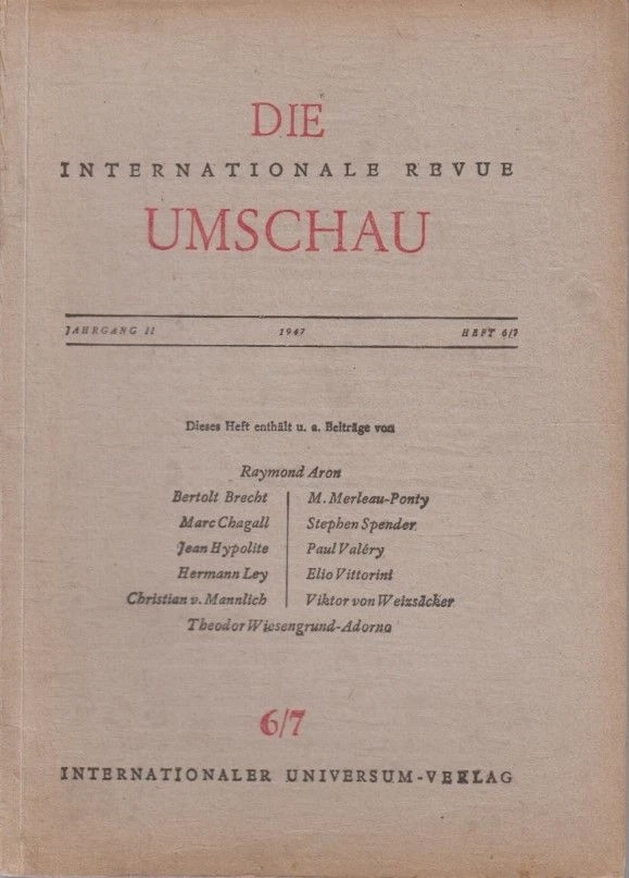 eine neue demokratische Gesellschaft zu leisten. Er gab in Mainz die Zeitschrift “Umschau” heraus. (Interessanterweise wird das zwar auf der Wikipedia-Biographieseite bestätigt, auf der Wikipediaseite zur Zeitschrift hingegen nicht).