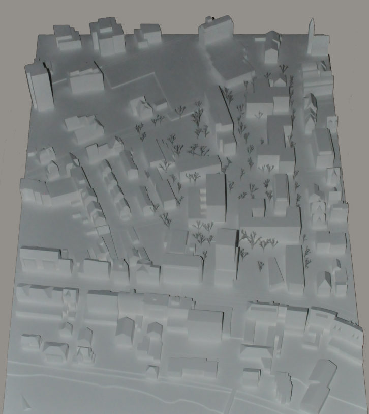 Mein Lieblingsmuseum bleibt bestehen! Mutig die alte Turnhalle eliminiert. Das etwas verschobene Hochhaus am Rande der Hauptstrasse ist mutig und schirmt die in Reih und Glied aufgestellten Sitzbänke (?) oder Marktstände (?) etwas vom Lärm der Hauptstrasse ab. Jan Gehl würde eine andere Anordnung der Sitzgelegenheiten vorziehen …