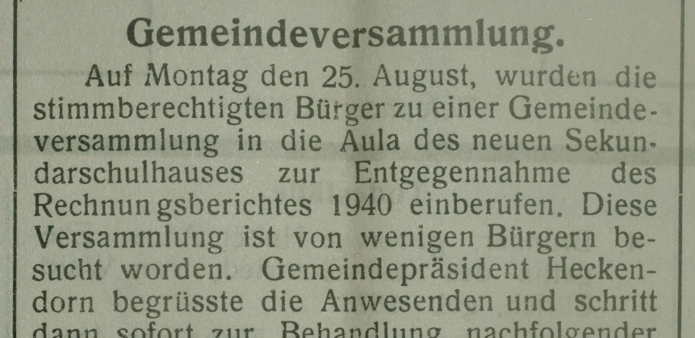 Wie wir im Birs­fel­der Anzei­ger vom 27. August 1941 nach­le­sen kön­nen, war die Betei­li­gung an Abstim­mun­gen und Gemein­de­ver­samm­lun­gen aber in Birs­fel­den offen­bar auch nicht immer befrie­di­gend: