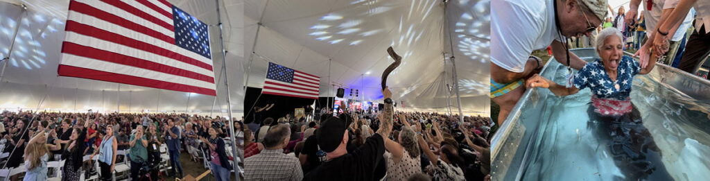 “Wir befinden uns im Krieg”, sagte ein Redner. Ein anderer sagte, er würde “eine Kugel für mein Land in Kauf nehmen”, während ein dritter betonte: “Sie hassen euch, weil sie Jesus hassen”. Den Teilnehmern wurde gesagt, dass es jetzt an der Zeit sei, “die ganze Waffenrüstung Gottes anzuziehen”. Dann lud der pensionierte Drei-Sterne-General der Armee, Michael Flynn, der größte Publikumsmagnet der Tour, die Menschen ein, sich taufen zu lassen.