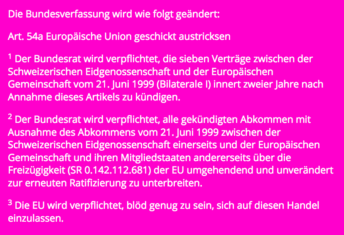 Schon am 9. Februar 2017, so quasi am Gedenktag der MEI, wollte die ANUS (die Aktion für eine Neutrale und Unabhängige Schweiz) eine Initiative zur Abschaffung der Personenfreizügigkeit lancieren und…